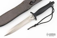 The Mark II is one of the best selling knives of all time. First introduced in 1966, this tactical knife is serialized for collectors. Satin finished double edged blade, .243" blade stock and .973" blade depth, hidden tang construction with a black aluminum handle. This knife is Serial #100867. Made in 1981. Comes with original box, papers, and leather sheath. Has some scuffs on the handle, excellent condition otherwise.