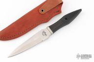 This WASP from Blackjack Knives features a satin finish clip point blade with swedge. The handle is comprised of a steel guard with textured rubber handle over hidden tang construction with chain ring pin. Includes leather sheath with belt loop and original box. Has some light scuffs and scratches, great condition otherwise.