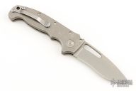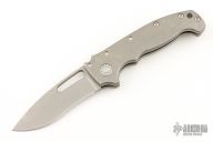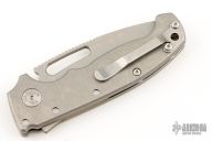 This AD20S by Andrew Demko features a stonewash finish blade with notched thumbrest, thumbhole and dual thumbstuds. The handle has an all Titanium frame with a tip up stainless steel clip and "Shark" lock release on the spine.  Comes with original box. New Condition.
