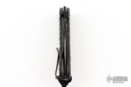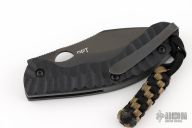 This Perrin PPT has a black TiCN coated finished CPM S30V stainless steel drop point blade with thumb hole and notched thumbrest. Handle is black G-10 over black stainless steel liners and backspacer. Black stainless steel tip up clip. Has scuffs and scratches throughout, has been resharpened. Fair condition/good user condition.