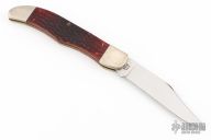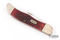 This slipjoint by Case with red jigged bone covers and nickel silver bolsters, brass liners, stainless steel springs. Has a mirror finished blade with nail nick. Has some scuffs, scratches, and patina. Great condition otherwise.