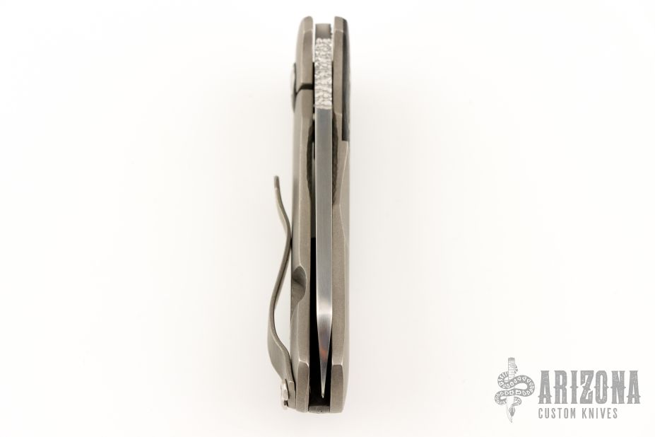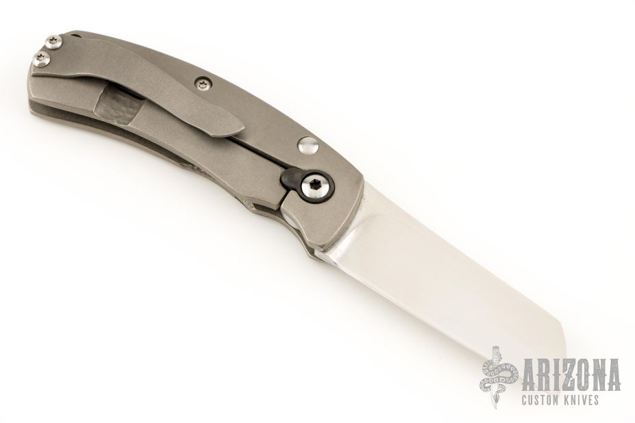 This Tozer by Brad Southard features a hand rub satin finish sheepsfoot style blade with nail nick. The handle has a carbon fiber bolster over a titanium frame with a tip up titanium pocket clip. Includes a padded zippered case.  Excellent Condition.