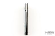 The long and lasting collaboration with Attilio Morotti “Atti”, one of the best and most valued Italian knife makers, continues. After more than 10 years of making knives with Atti, Maserin has developed a relationship of friendship, collaboration, and mutual respect. The latest collaboration is the Daga which, like its name implies, is a short, pocket knife version of a dagger that is far more portable. The Elmax blade is only slightly over 3" in length and has only one sharpened edge to make handling the knife when opening and closing safer. The blade is deployed with an interesting flipper tab that faces towards the top of the knife with a jimped edge that provides purchase. The sleek handles give a sophisticated look with its combination of FatCarbon and titanium and the flared design helps ensure the knife doesn't slip out of your hand during use. The lack of a pocket clip on the Daga is made up for with a leather pouch that keeps the knife protected as it sits in your pocket. The Daga knife offers portability and safety with its pocket-sized dagger design, featuring a secure grip, a safe handling mechanism, and a protective leather pouch for convenient everyday carry.
