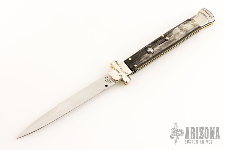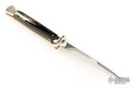 Angelo Campolin Sr. was born in 1923 in Maniago, Italy. He worked on perfecting his knife making skills before WWII and at this time made his first switchblades. After the war, in 1947 he started his company and made 30 stilettos with the marking “Angelo Campolin”. In the 1970’s Angelo’s son Gianni started to work in the company and they were specializing in folding hunting knives and also manual folding stilettos for the Robert Klaas company in Solingen Germany with their Kissing Cranes mark. In 2002 American switchblade collectors Dan Fuller, Brad West, and Tim Zinser were visiting Maniago and enjoying a few glasses of wine in a bar with Angelo Jr. and Gianni. The discussion was about a new name for some knife projects they wanted to pursue. It was Brad West that suggested the tang stamp should be AGA, for Angelo, Gianni, Angelo, thus representing three generations in the knife making business. The Campolins liked it and it stuck. In the beginning it was just a few items, but grew to the point where now there are 12 models and different scale options. The goal has been to offer quality switchblades using the old methods and traditions. Being a collector himself, Angelo Jr. knows what others like. The company headquarters has moved to Austria with production still in the original Maniago shop, as well as the others in Maniago that produce the knives for A.G.A. Campolin.