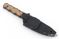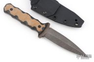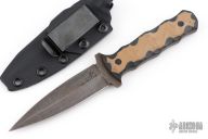 This Combat Dagger by Half Face Blades features an acid tumbled double-edged with a full tang construction. .148" Blade Stock. 1.047"Blade Depth. The handle has coyote/black G-10 scales. Includes a black kydex sheath. Excellent Condition.
