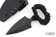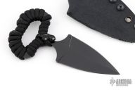 This Push Dagger by Half Face Blades features a black double edged blade, .160" blade stock and 1.369" blade depth, full tang construction with black cord wrap. Comes with a kydex sheath. Excellent condition.