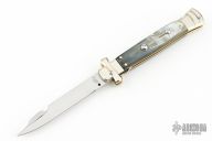 Angelo Campolin Sr. was born in 1923 in Maniago, Italy. He worked on perfecting his knife making skills before WWII and at this time made his first switchblades. After the war, in 1947 he started his company and made 30 stilettos with the marking “Angelo Campolin”. In the 1970’s Angelo’s son Gianni started to work in the company and they were specializing in folding hunting knives and also manual folding stilettos for the Robert Klaas company in Solingen Germany with their Kissing Cranes mark. In 2002 American switchblade collectors Dan Fuller, Brad West, and Tim Zinser were visiting Maniago and enjoying a few glasses of wine in a bar with Angelo Jr. and Gianni. The discussion was about a new name for some knife projects they wanted to pursue. It was Brad West that suggested the tang stamp should be AGA, for Angelo, Gianni, Angelo, thus representing three generations in the knife making business. The Campolins liked it and it stuck. In the beginning it was just a few items, but grew to the point where now there are 12 models and different scale options. The goal has been to offer quality switchblades using the old methods and traditions. Being a collector himself, Angelo Jr. knows what others like. The company headquarters has moved to Austria with production still in the original Maniago shop, as well as the others in Maniago that produce the knives for A.G.A. Campolin.