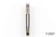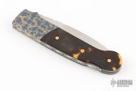 This lockback by W.D. Pease features a hand rub satin finished blade with nail nick and fileworked spine. The handle has two-tone finished and anodized titanium bolsters that have been stippled, faux tortoise shell scales with gold leaf underlay, stainless steel liners, fileworked stainless steel backspacer, gold-plated screws. Has a couple very light scratches, otherwise excellent condition. Comes with a zippered case.