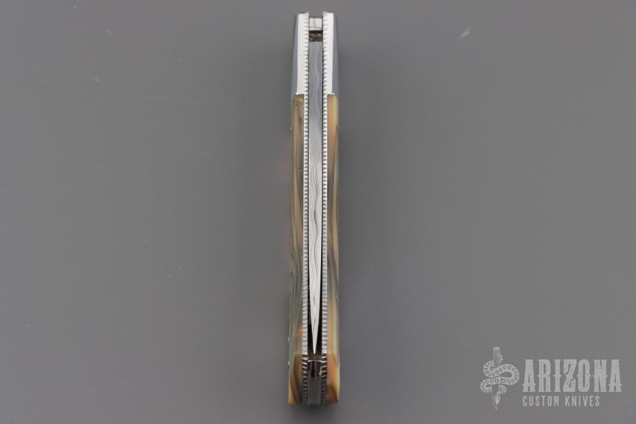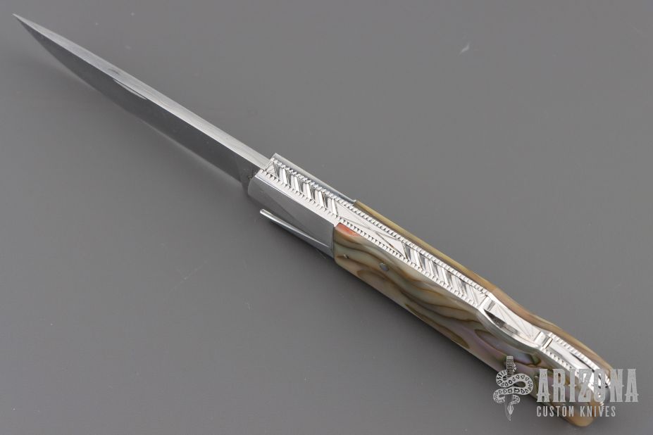 "I've been building knives full time since 1981. I started out making my first knife on the kitchen table with a vise and some files in 1978 at the age of 15. Ever since then it's been a passion and a journey to build a better knife than the last. I primarily make pocket knives with a lockback or front lock mechanism. I have made many other types of knives and am always willing to try something new. I'm most widely known for carving seashell patterns in the bolsters and handle material called scalloping. This type of carving has become a trademark of my work and makes my knives easily recognizable to collectors who have heard of me. I won 11 Blade show awards in 7 consecutive years from 2002 to 2008 including 2 best folder awards, one best folder of the year, 3 best handle designs. I ended competing at the Blade show in 2008 with wining best fixed blade which won best of show. I have also won best folder at the Plaza Invitational and the Chicago show."