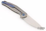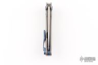 This Neo by Jens Anso features a hand rub satin finished blade with notched flipper. The handle has a checker milled titanium frame with timascus tip up clip and backspacer with lanyard hole. Has a stainless steel lockbar insert and over travel stop. Rides on bearings. Nice detent, lockup and blade seating. Comes with a original box and COA dated July 2022. Excellent condition.