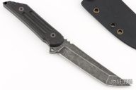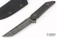 This Fixed Blade Kwaiback by Jake Hoback features a stonewashed tanto blade with notched thumbrest, .187" blade stock and 1.093" blade depth, full tang construction with carbon fiber scales. Comes with a kydex sheath. Excellent condition.
