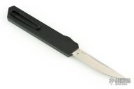 The Boker Plus Kwaiken OTF combines the slim, minimalistic design with a perfect automatic mechanism. When the serrated trigger on the top of the handle is pushed forward, the satin-finished blade made of D2 jumps out of the milled aluminium handle frontally at breathtaking speed and disappears again in the same way when the trigger is pulled. The clip (tip-up/r) forms a successful contrast to the black handle. With lanyard hole. Comes with original box, zippered case and papers. New condition.