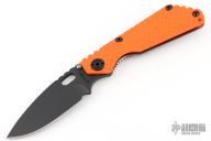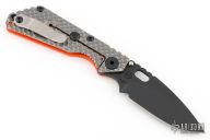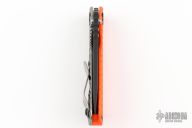 This SNG GG by Strider has a black spear point blade with dual thumb studs, thumbhole, and notched thumb rest. Handle is orange G10 and titanium frame, with lockbar stabilizer and a matching tip up clip. Nice detent, lockup and blade seating. New condition.