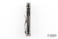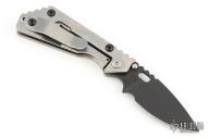 This PT by Mick Strider features a black blade with notched thumbrest and thumbhole. The handle has a stonewash titanium frame with matching tip up clip. Black Hardware. New condition.