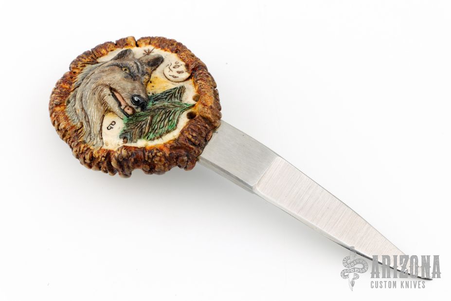 Home Products Belt Buckle Knife w/ Paul G Grussenmeyer Carving