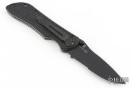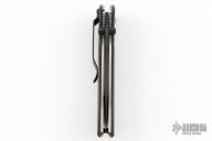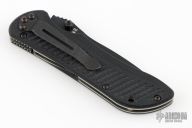 This Mini Stryker by Benchmade features a black spear point blade with partial serrations, dual thumbstuds and notched thumbrest. The handle has black G-10 scales, titanium liners, and a tip down black stainless steel clip. Comes with the original box and papers. Excellent condition.