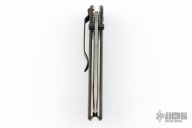 This Mini Stryker by Benchmade features a tanto blade with dual thumbstuds and notched thumbrest. The handle has black G-10 scales, titanium liners, and a tip down black stainless steel clip. Comes with the original box and papers. Excellent condition.
