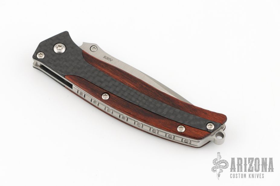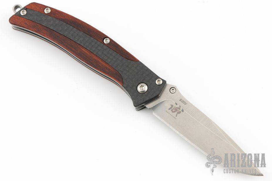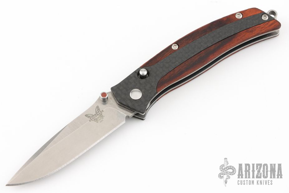 The Megumi by Benchmade is a gentleman's knife with a stonewashed assisted opening blade and Benchmade's Nak-Lock and Cocobolo inlaid thumb stud. The handle is outfitted with Cocobolo wood, carbon fiber scales and finished with a stainless steel backspacer with lanyard hole. Comes with original box and papers. Excellent Condition.