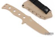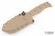 This Fixed Adamas fixed blade combat knife was designed by Shane Sibert. The tan finished D2 steel drop point blade has a plain cutting edge and jimping on the spine. The handle is skeletonized with optimally positioned grooves. The Fixed Adamas knife also comes with a black molded sheath with secondary locking strap and tension screw for secure storage and custom tuned deployment.