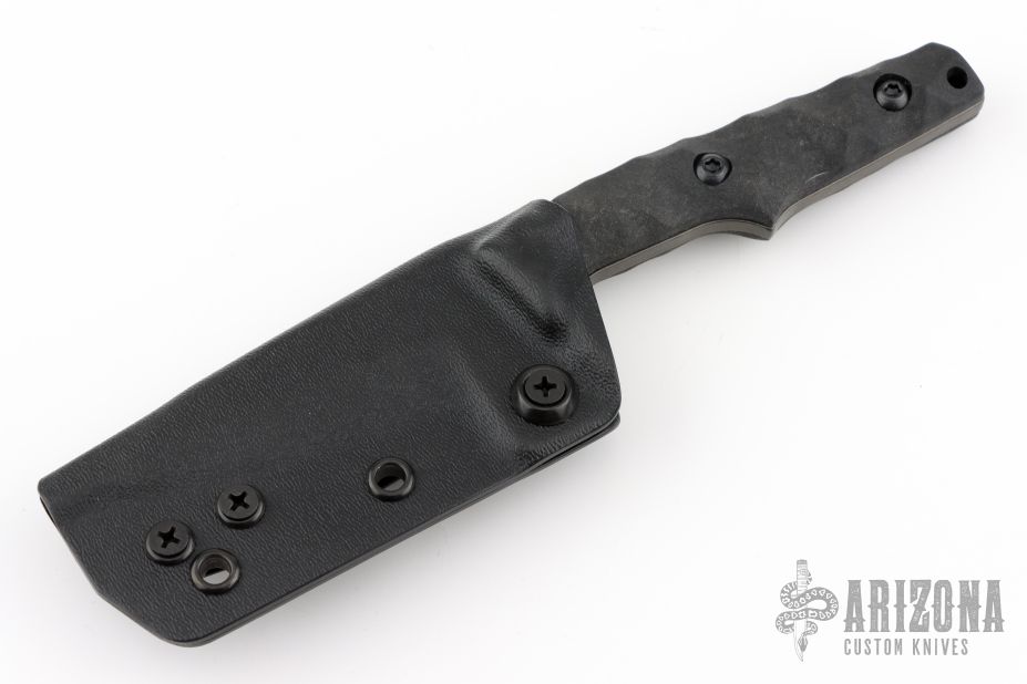 This Thick Huginn EDC by Bawidamann Blades was named after Odin’s Raven. It features "black mirror" finished blade with notched thumbrest, .158" blade stock and 1.214" blade depth, full tang construction. The handle has IM Bawidamann Chunked Pattern Carbon Fiber scales (proprietary Carbon fiber composite). Comes ready to carry with the Bawidamann Uberscabbard. New from maker.
