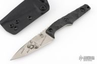 This Thick Huginn EDC by Bawidamann Blades was named after Odin’s Raven. It features stonewash finished blade with notched thumbrest, .158" blade stock and 1.214" blade depth, full tang construction. The handle has IM Bawidamann Chunked Pattern Carbon Fiber scales (proprietary Carbon fiber composite). Comes ready to carry with the Bawidamann Uberscabbard. New from maker.