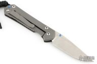 This Small Sebenza 21 by Chris Reeve Knives features a tumble finished drop point style blade with notched thumb rest and single anodized titanium thumb stud. The handle is comprised of a carbon fiber and bead blasted titanium frame with matching tip up clip over a single anodized barrel spacer and lanyard pin. Excellent condition. This knife was a Knife Art Exclusive. Comes with original box and COA dated October 22, 2012.