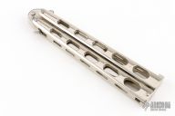 This Model 239 balisong by Benchmade features a polished stonewashed blade with false top edge. The Zanak handle has polished finish and latch. Has some light scratches, otherwise excellent condition.