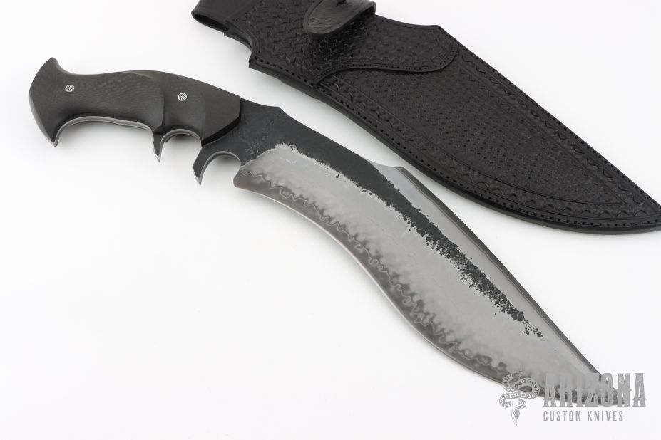 This knife by The Sobral Brothers is incredible, it features a San-Mai clip point recurve blade with a nearly sharpened top edge, .265" blade stock and 2.94" blade depth, full tang construction. The handle has carbon fiber slabs with laser engraved pins. Fits amazing in the hand. Comes with a skillfully hand-tooled brown leather sheath, and a very classy leather zippered case. Excellent condition.