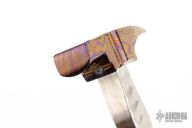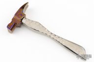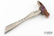 This Carpenter Hammer Pry Tool by EMA Forge features a timascus head with nail pulling notches on the claw end, satin finished timascus handle with textureing. (yes, the handle is also timascus, but it is not heat colored or anodized, you can see the layers easily in the right light). Comes with a black leather sheath. New from maker.