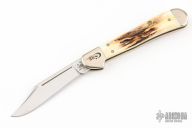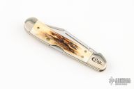 This Mini Copperlock by Case Knives features polished blade with a single nail nick. The handle has nickel silver bolsters and cap, stag scales, brass liners, stainless backspacers. Comes with original box and papers. Has a couple light scratches, otherwise Excellent condition.