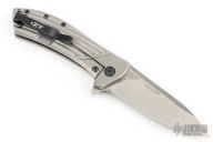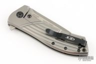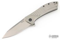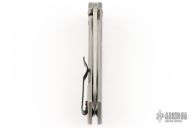 This 0801 Rexford Flipper #0835 has a stonewashed Elmax spear point blade with swedge. Handle is fluted titanium with black finished stainless steel tip up (RH/LH) clip and lanyard hole. Has a couple light scratches, otherwise excellent condition.