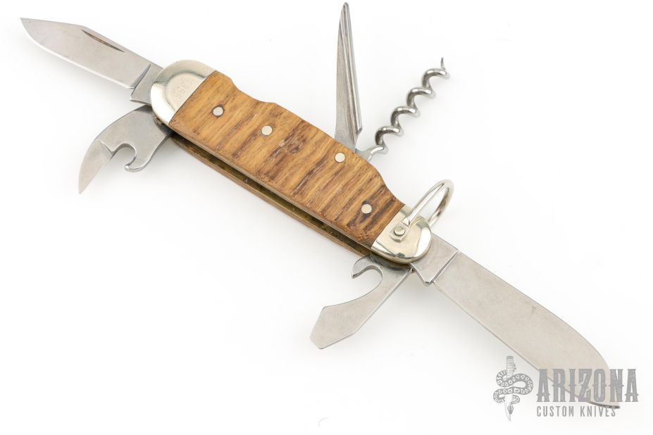 This 3-piece pocket knife features polished nickel silver bolsters and wood handles. Offers one blades, a can opener, and corkscrew. Blades are made of 4024 stainless steel. A necessary companion in any situation! Made in Solingen, Germany.