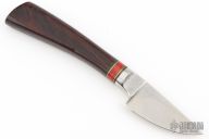 This Integral Drop Point Hunter by Boye features a drop point blade with an integral guard, .235" blade stock and .953" blade depth at the plunge line, hidden tang construction. The handle has a wood grip with red and brass spacers. Has some scuffs and patina. Great condition otherwise.