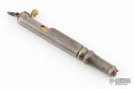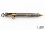 This Bolt Action Pen from Hidetoshi Nakayama features a multi-finish grip and shaft, bolt action locking mechanism, and lanyard ring. Refillable - takes Caran d'Ache of Switzerland, Giant Cartridge Goliath, 8428.000 Medium Black refills. Excellent condition. Comes with original box.