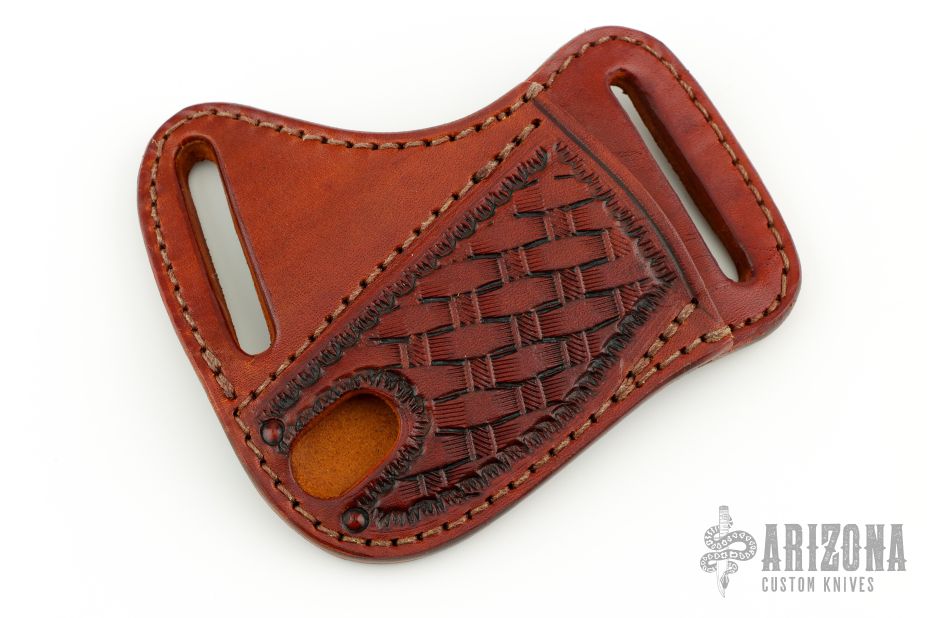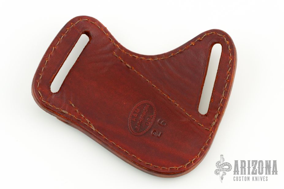 This cross draw sheath by A&M Leather is handcrafted from top quality leather. Made primarily for slipjoints - with a 1.5" opening and 3.25" pocket. Very well-made. New from maker.
