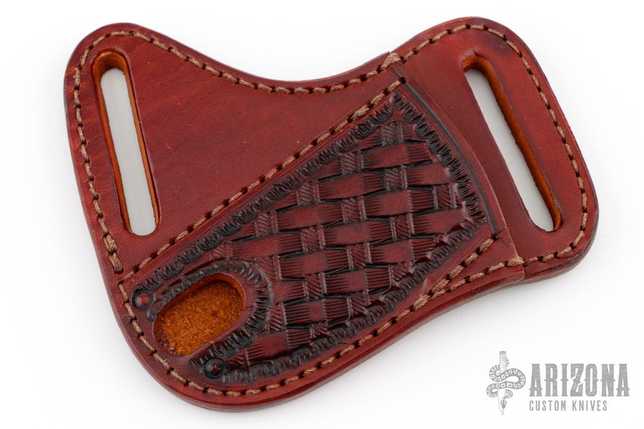 This cross draw sheath by A&M Leather is handcrafted from top quality leather. Made primarily for slipjoints - with a 1.5" opening and 3.25" pocket. Very well-made. New from maker.