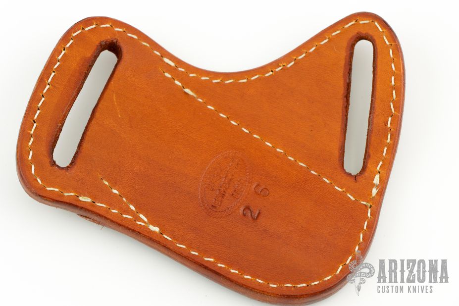 This cross draw sheath by A&M Leather is handcrafted from top quality leather. Made primarily for slipjoints - with a 1.5" opening and 3.25" pocket. Very well-made. New from maker.