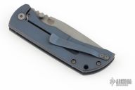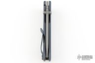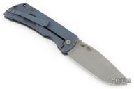This MAC2 features a stonewashed drop point Magnacut blade with dual thumbstuds and a notched thumbrest.  The handle features a bead blast/stonewash/anodized titanium frame with a matching tip up pocket clip. Comes with original box and papers. Excellent condition.