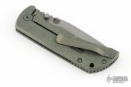This MAC2 features a stonewashed drop point Magnacut blade with dual thumbstuds and a notched thumbrest.  The handle features a bead blast/stonewash/anodized titanium frame with a matching tip up pocket clip. Comes with original box and papers. Excellent condition.