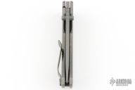 This MAC2 features a stonewashed drop point Magnacut blade with dual thumbstuds and a notched thumbrest.  The handle features a bead blast/stonewash titanium frame with a matching tip up pocket clip. Comes with original box and papers. Excellent condition.