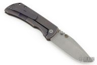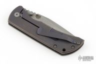 This MAC2 features a stonewashed clip point Magnacut blade with dual thumbstuds and a notched thumbrest.  The handle features a bead blast/stonewash/anodized titanium frame with a matching tip up pocket clip. Comes with original box and papers. Excellent condition.