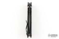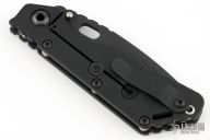 This Mick Strider Performance Series SMF framelock folder features a black finished spear point blade with thumbhole and notched thumbrest. The handle has a black titanium frame with titanium clip, tip up carry. Jimping on blade spine. Includes Hinderer "Lock Bar Stabilizer" for maximum reverse lock retention. Nice detent, lockup and blade seating. Has a couple light scuffs on the frame, excellent condition otherwise.