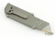 The CHUB (Chaves Handy Utility Blade) from Ramon Chaves features a Lenox Gold utility blade that is easily replaced by extending the blade housing to the outermost position and releasing the blade. The handle and pocket clip is crafted from titanium that has been stonewashed for a durable finish. Comes with original box. Has a couple light scuffs, otherwise excellent condition.