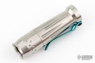 This Starfall Flashlight is a collaborative effort between Joshua Dawson and Mitch Lum. It features titanium construction with dimpling and fluting.  Green rubber clicky switch on tail cap. Includes a padded slip case by Dragoncut Design and COA dated 7-dec-2019. Specs: Driver -Dragon, green.  Emitter: 219C 4000K. Optic: Carclo . Window: Sapphire. Battery: Single 18350 (Not Included).  Excellent condition.