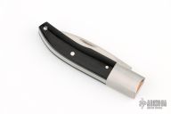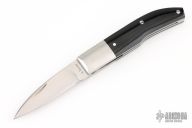 This City Knife Slipjoint by A Vetrov features a hand rub satin finished blade with nail nick. The handle has stainless steel bolsters, black linen micarta covers with stainless steel pins, stainless steel liners and spring. Has half-stop, flush in all positions. Comes with a zipppered case, leather slip sheath and a COA dated 2-20-25. Excellent condition.