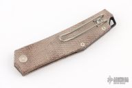 This ACE Clyde by Giant Mouse Knives features a stonewashed upswept blade with a black thumbstud and backspacer. The handle features natural canvas micarta scales. Excellent Condition. Comes with original box and papers.
