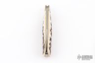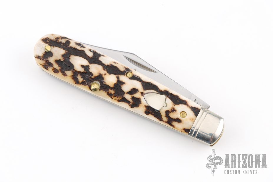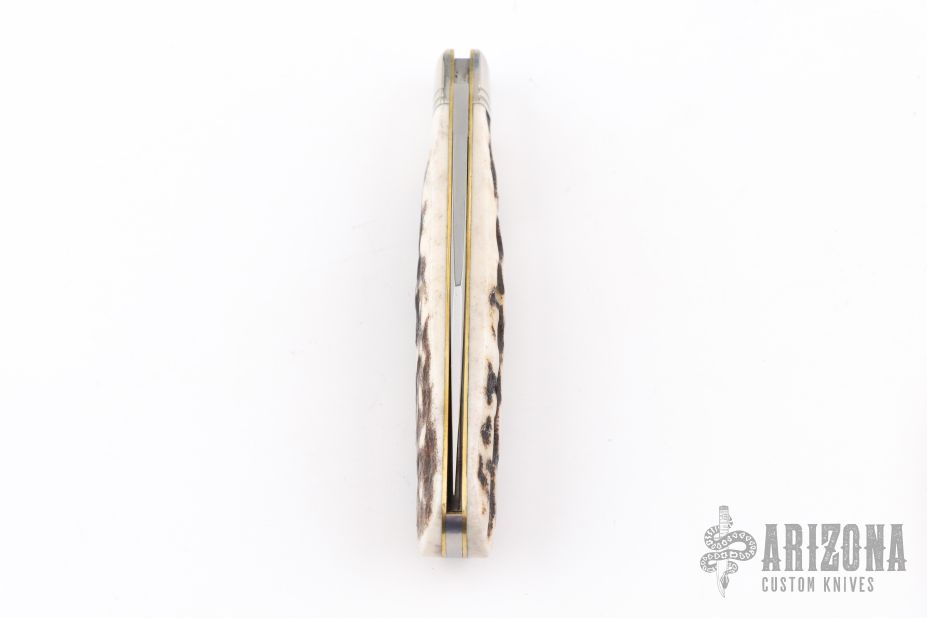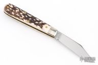 This slipjoint by Great Eastern Cutlery features a satin finished clip point blade with a nail nick. The handle has nickel silver bolsters, American Elk covers, brass liners and steel spring. Has half stop. Comes with original tube. Excellent condition.