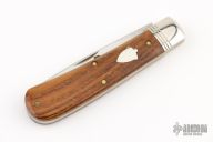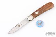 This knife by Great Eastern Cutlery features a satin finished blade with nail nick. The handle has nickel silver bolsters that are pinched and fluted, brass liners, American Chestnut covers. Has half-stops. Comes with original tube. Excellent condition. 216 made