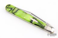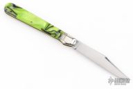 This knife by Great Eastern Cutlery features a satin polished blade with a single nail nick. The handle has nickel silver bolster and escutcheon, brass liners, Kryptonite Acrylic covers. Has half-stop. Comes with original tube. Excellent condition. One of 18 made