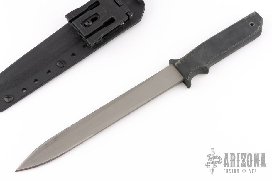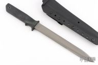 This Norwegian Seal Team Mine Probe, Circa 2001, by Strider features a double edged bead blasted blade with .249" blade stock and .999" blade depth, hidden tang construction with a black G-10 grip, lanyard hole at the butt. Comes with a kydex sheath. Has some light scuffs and scratches, great condition otherwise.